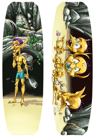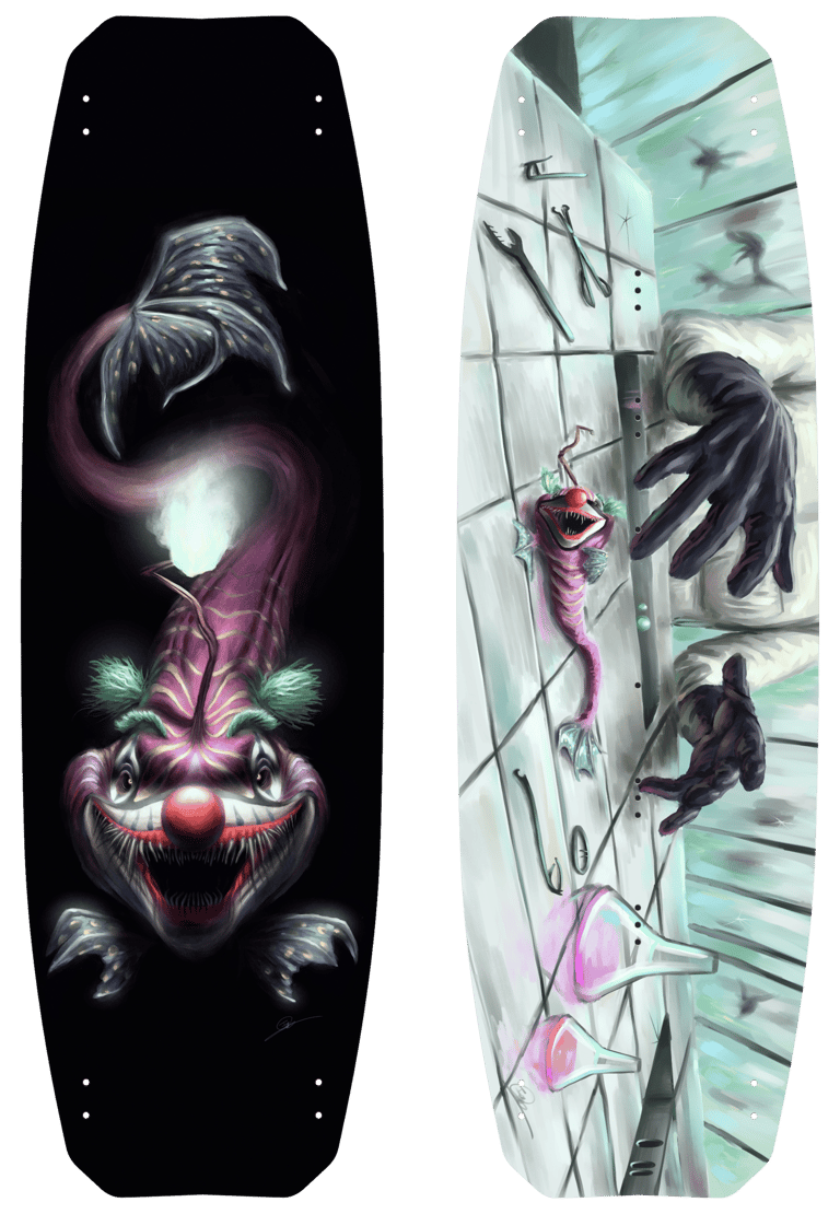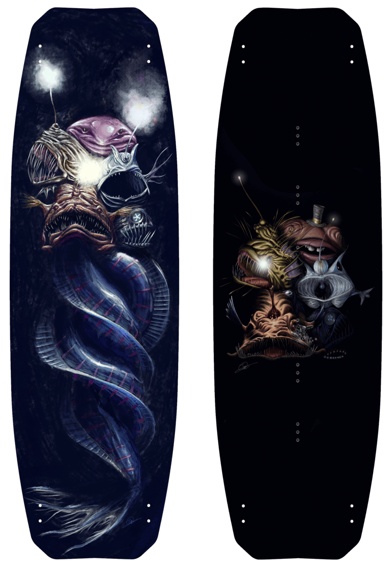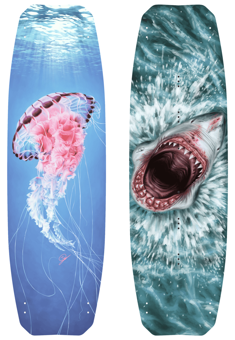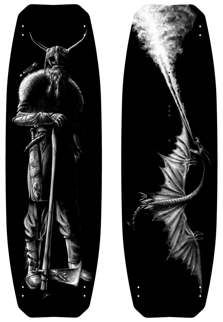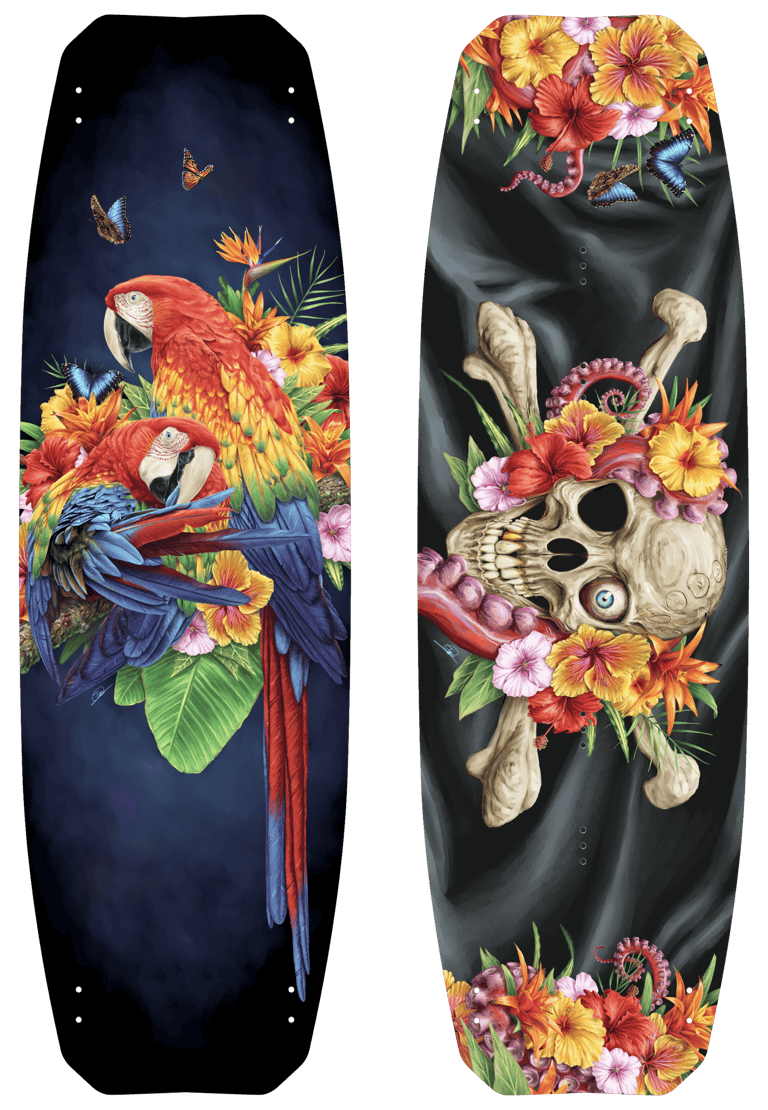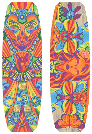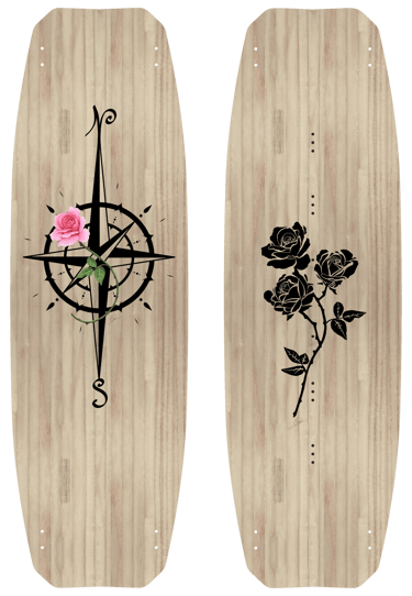 The wood of the board gets the spotlight as well by almost not adding any color; just as if tattooed on skin.