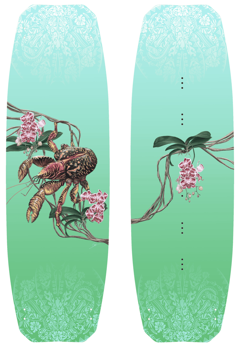 The background motives are largely inspired from Hawaiian pattern art and subtly portray the actual arthropod.