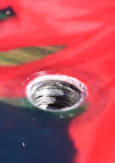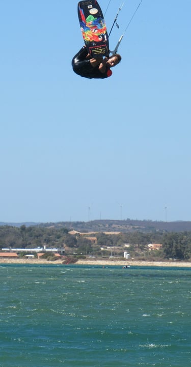 Throw the power of the kite in it, and you'll discover its wakestyle qualities and explosive response. This might well be the less water-sticky board you ever tried, jumping on a dime at any speed. Capable of instantly accelerating to top speed, in "manual clutch" fashion, the benefits of its three-stage rocker best come forward in flatter waters. It pops with amazing ease and control, while also aggressively when well powered up. Just be aware that this board was cleary designed with boots in mind and therefore go one size smaller than your usual for big air with pads, or move your pads slightly to the heelside to support the center channels. While its true potential gets unveiled in the mid-high windrange, unlike most performance boards, the user doesn't pay off comfort for performance. This is especially noticable in chop and during landings. Very remarquable is the fact that those seemingly opposite performance aspects - cosy freeride vs aggressive wakestyle/big air - could be blended into the same board with only little compromise. Ironically, it isn't a "pure" style, but is shaped with such insight that you get both the comfort or kick out of it when you want to. The unique shape and flex pattern make up for a really clever design.